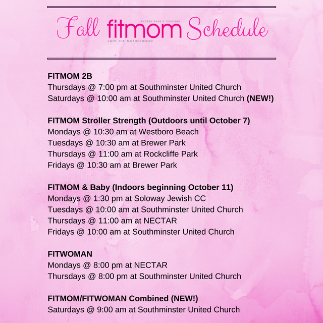 2016 Fall Schedule Fall FITMOM Class ScheduleSeptember 12 - December 10, 2016 View fullsize Please visit out locations page to find out more information about where you can find us!Don't forget to Join the Motherhood and register for fall FITMOM classes! Can't wait to meet you there! Susan McDonaldAugust 6, 2016Comment Facebook0 Twitter Pinterest0 0 Likes